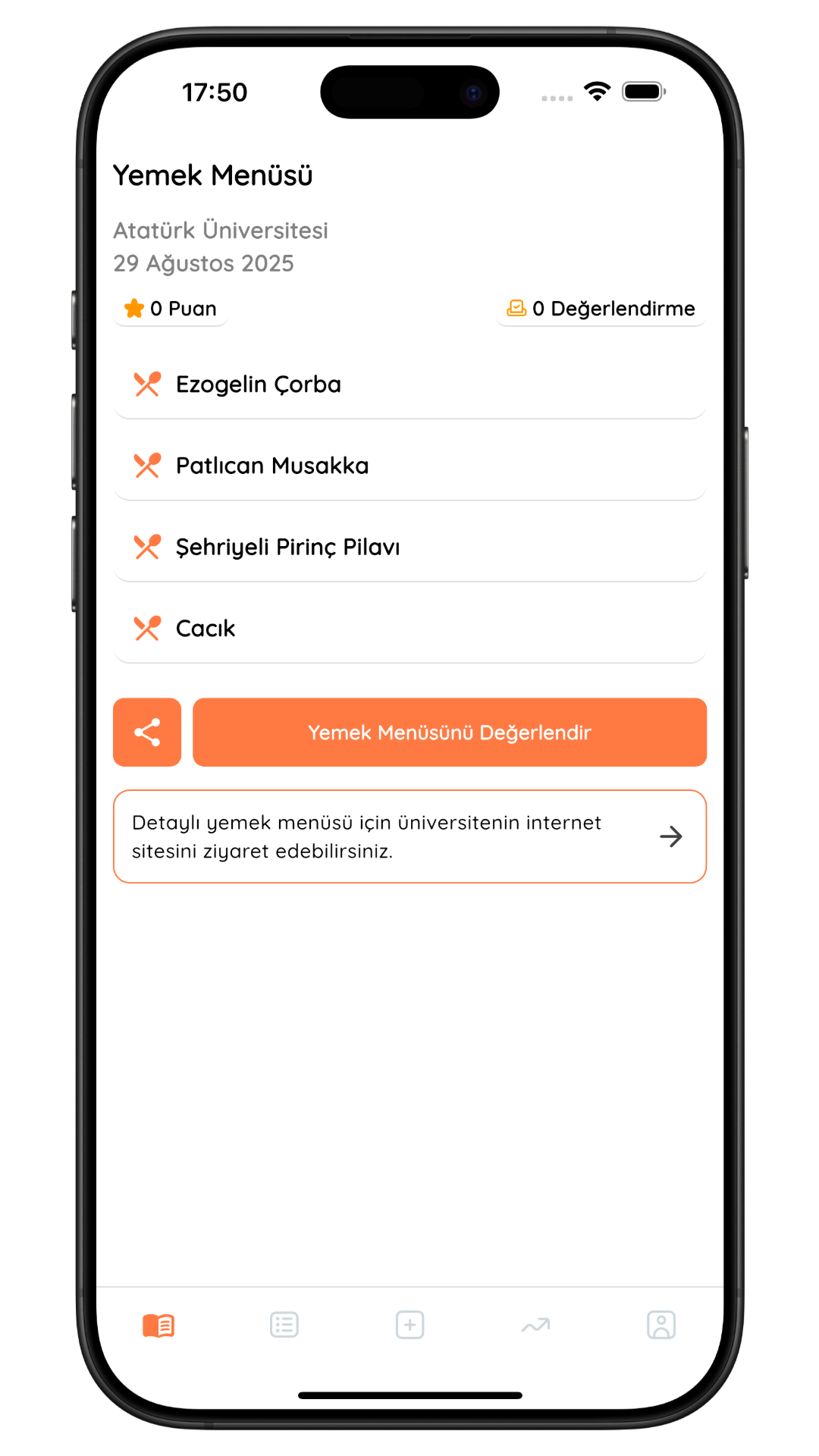 KampüsLife ile üniversitenin günlük yemek menüsünü kolayca takip et. Her gün otomatik olarak